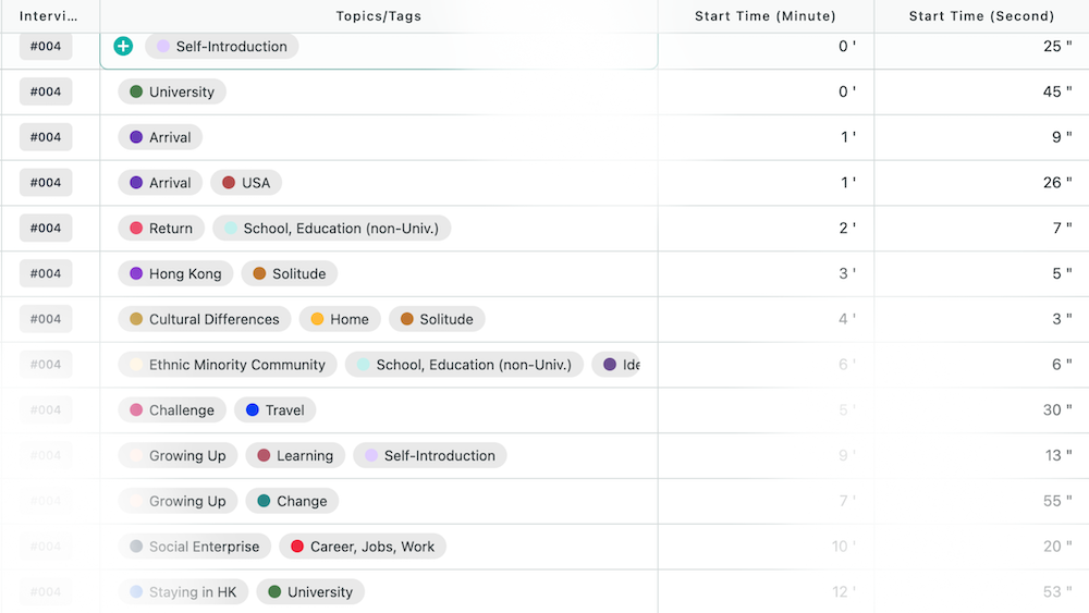 And, to be sure, the research team asks similar questions at each interview: tell me about your relationship to Hong Kong, (for those who came here from another place) tell me about how you arrived in Hong Kong and why you decided to stay, tell me about your impressions of Hong Kong. I just started snippet-ing and tagging the sixth interview recording. What strikes me is that, even though we ask similar questions, our interviewees provide such different responses. At the same time, they are also connected by a few common themes—looking for opportunities, finding success, taking risks, appreciating the present—and often in surprising ways.